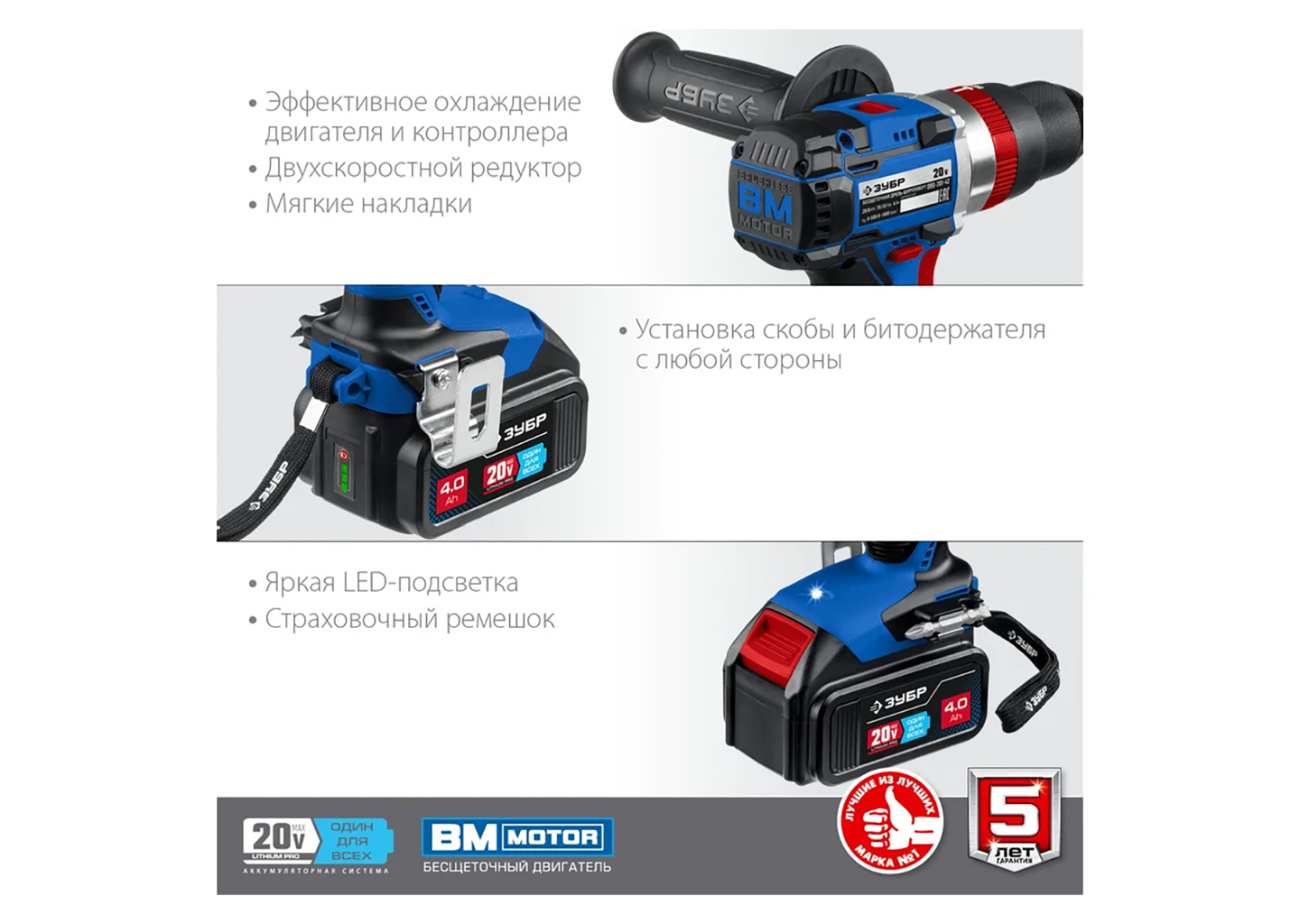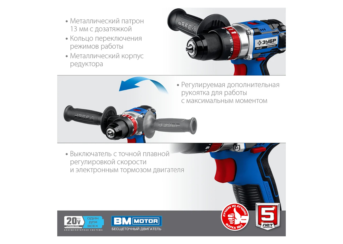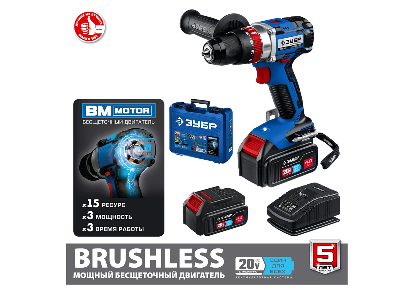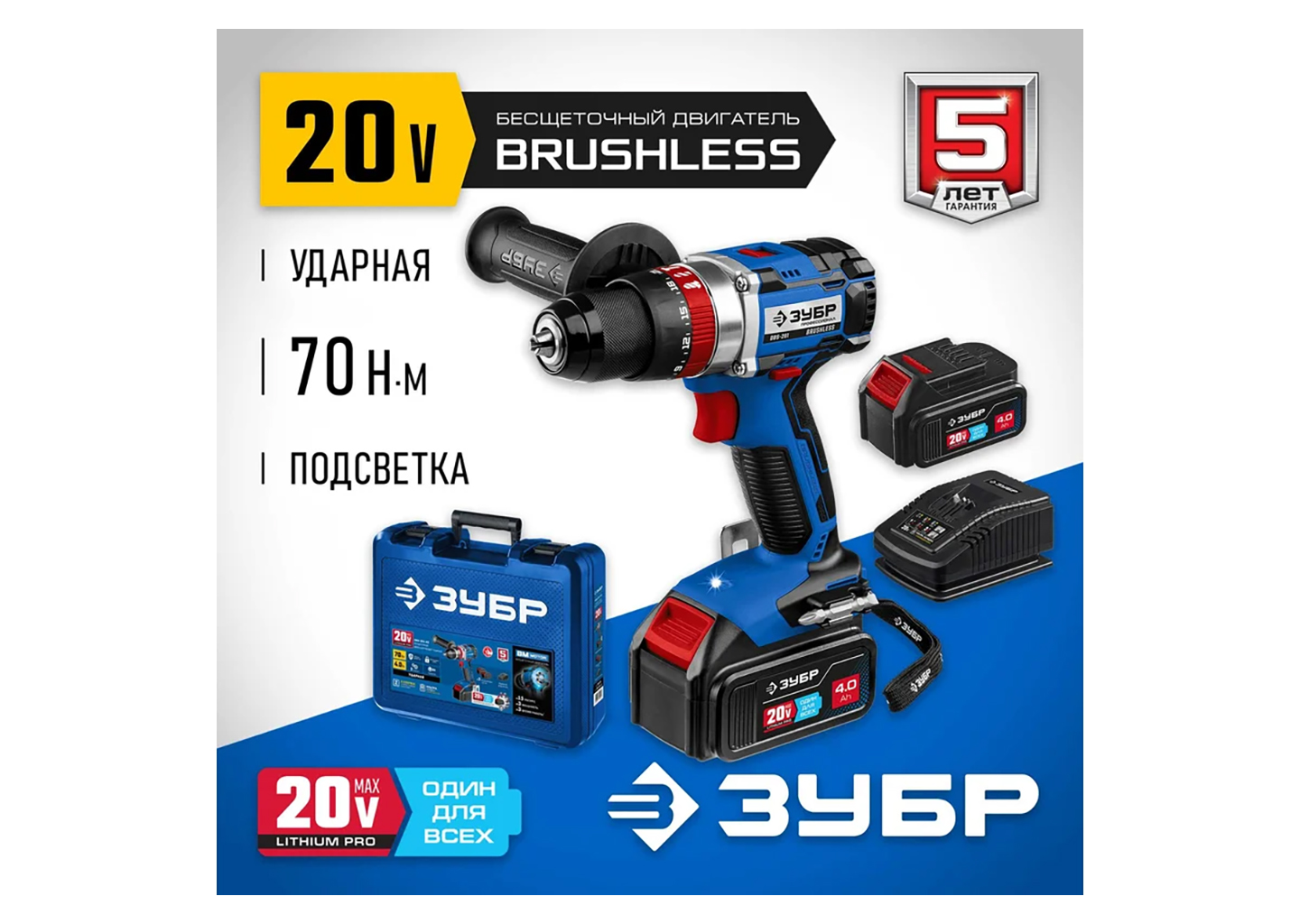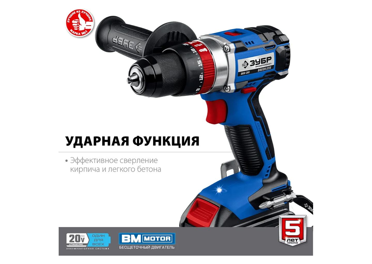 Бесщеточная дрель-шуруповерт ЗУБР Профессионал DB-201-22