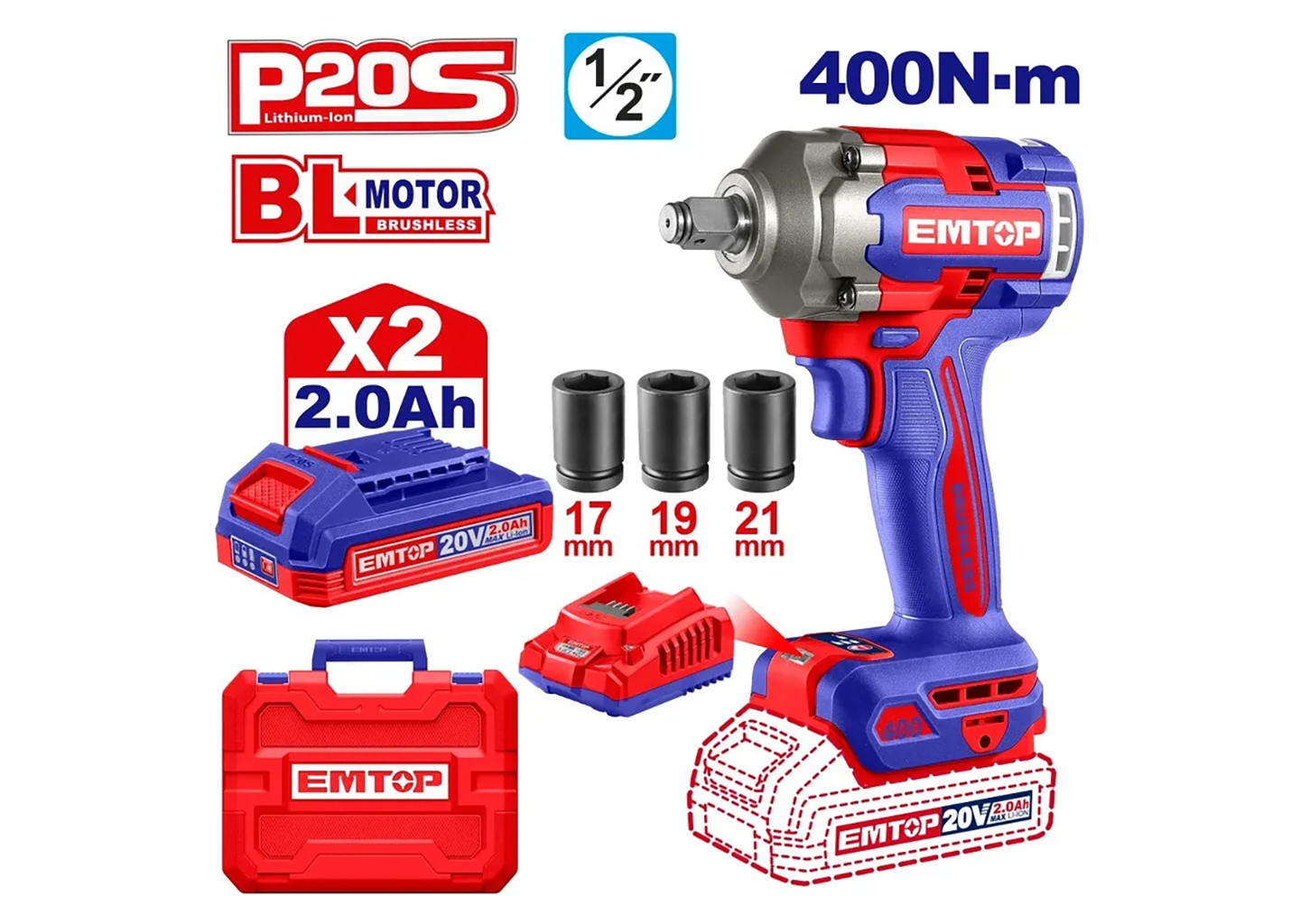 Гайковерт аккумуляторный ударный Hanskonner HCD20420BLC