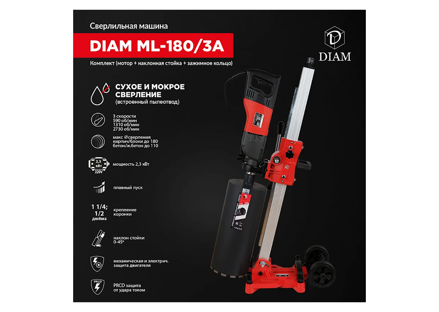 Сверлильная машина Diam ML-180/3А PRO комплект 620113