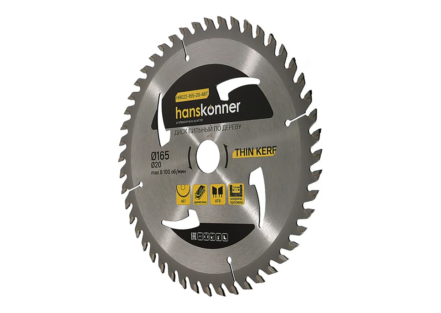 Пильный диск по дереву Hanskonner H9022-185-20/16-48