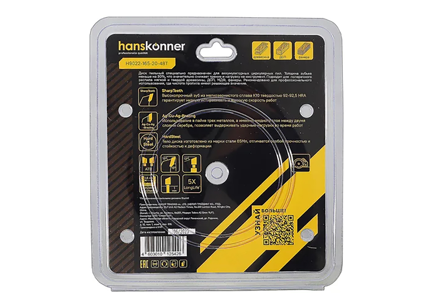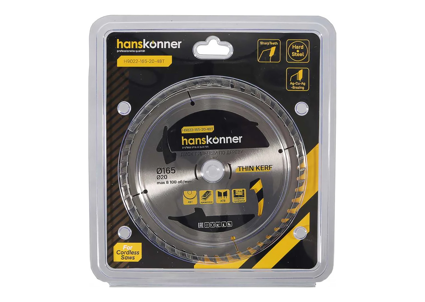 Пильный диск по дереву Hanskonner H9022-165-20-36