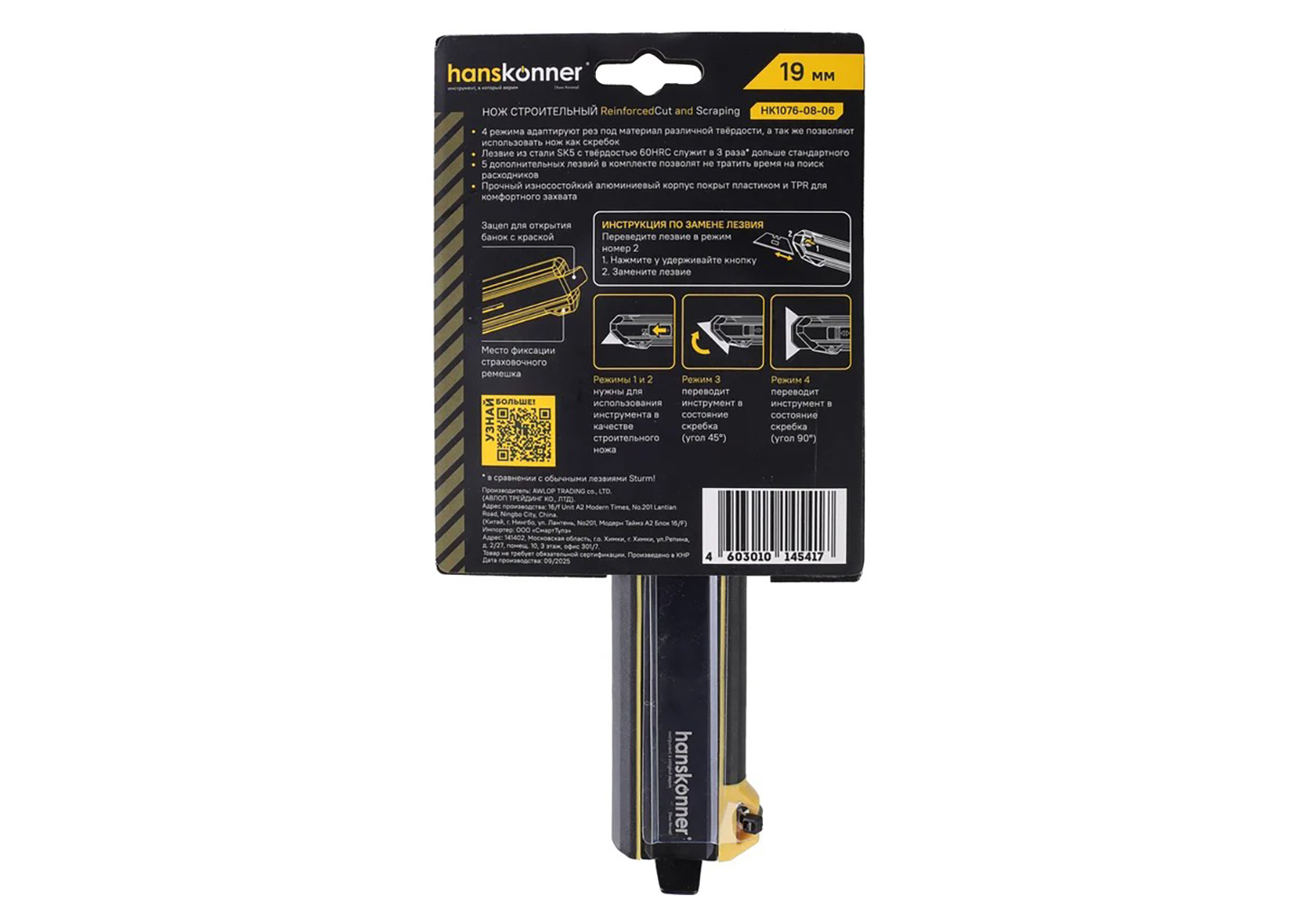 Строительный нож Hanskonner HK1076-08-02 SolidFixation