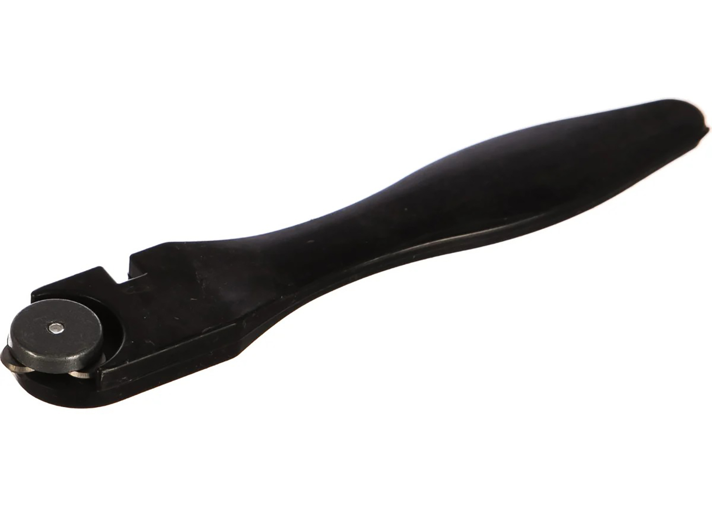 Корпус выполнен из ударопрочного пластика, поэтому стеклорез нормально переносит обычную рабочую нагрузку и не требует сложного ухода. Кроме того, модель оснащена тремя режущими роликами, благодаря чему инструмент дольше сохраняет работоспособность: при износе одного ролика можно задействовать другой. Рукоятка сделана пластиковой и имеет удобную форму, поэтому инструмент уверенно лежит в руке и позволяет спокойнее вести рез по намеченной линии.