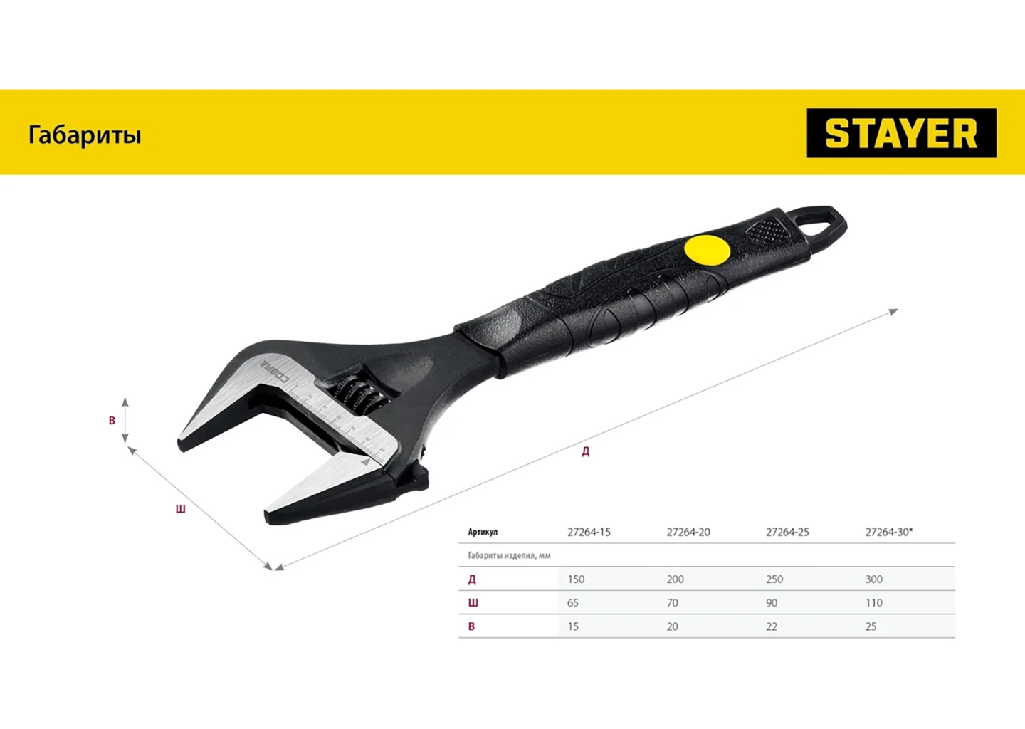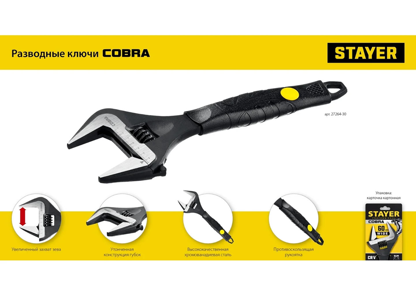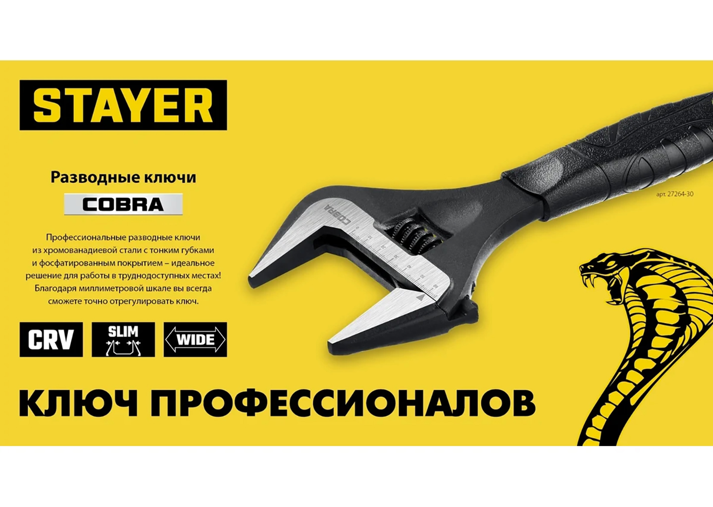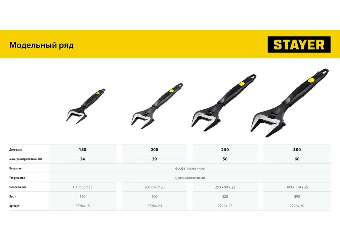 Ключ STAYER Cobra разводной 300/60 мм