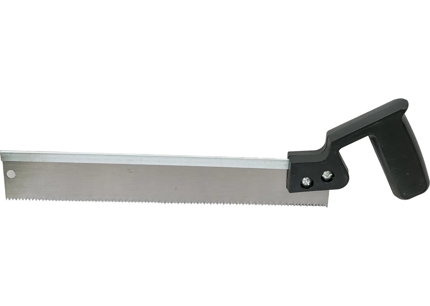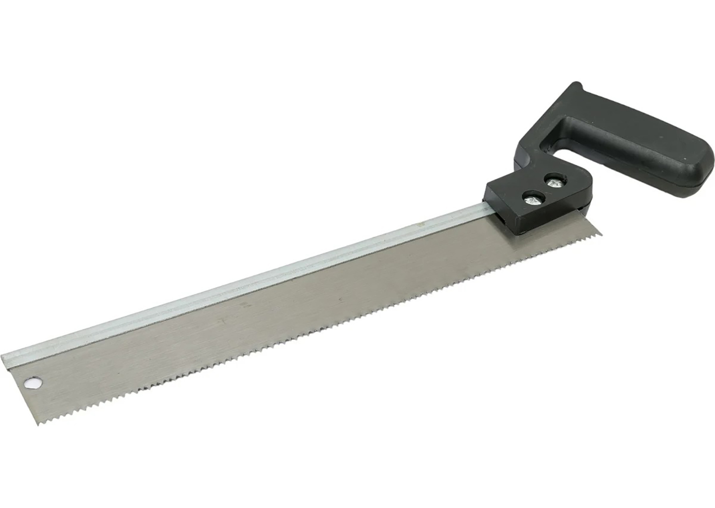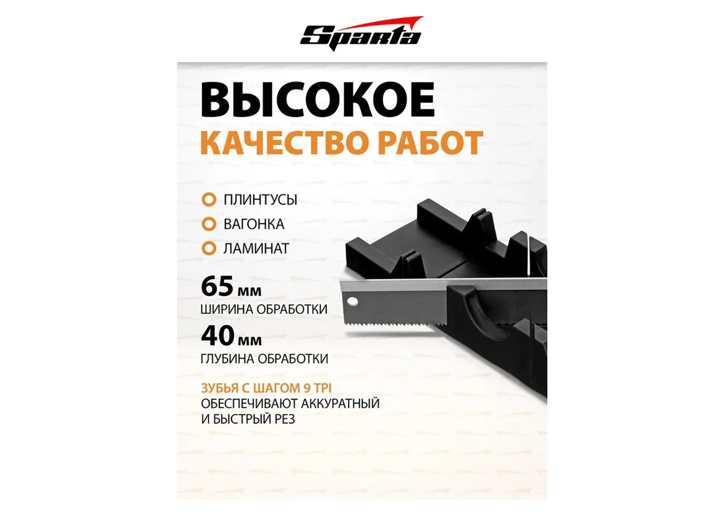 Форм-фактор стусла с пилой делает комплект сразу готовым к работе, что особенно важно при разовых подрезках и несложном монтаже. Ширина распила до 65 мм и высота до 40 мм позволяют работать с распространенными отделочными элементами, а обушковая пила длиной 300 мм обеспечивает стабильное ведение полотна по направляющим пазам. Кроме того, зуб с частотой 9 TPI подходит для уверенного продольного и поперечного пиления материалов, где нужен контролируемый рез без излишней агрессии. За счет этого инструмент подойдет тем, кто ищет недорогое, но понятное в работе стусло для дома, ремонта или мастерской.