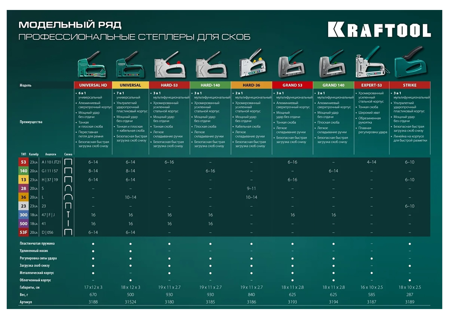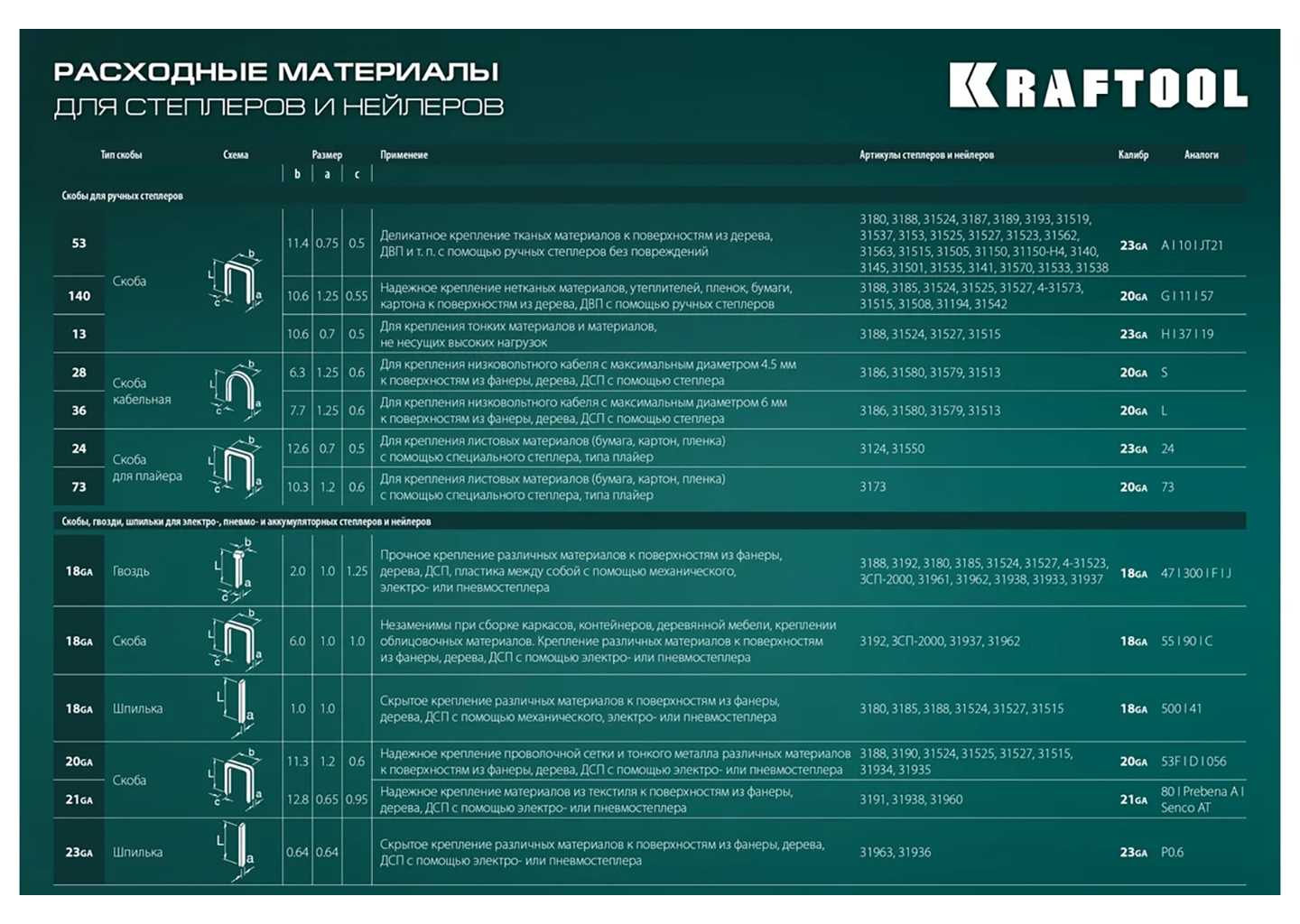 Тип скобы: 20GA, 53F, 56, 73, D
