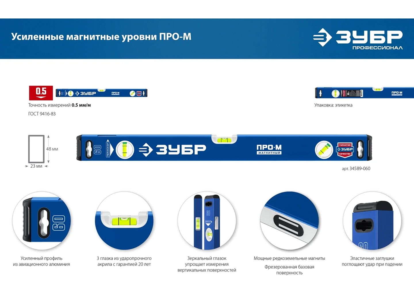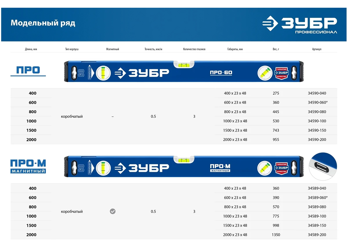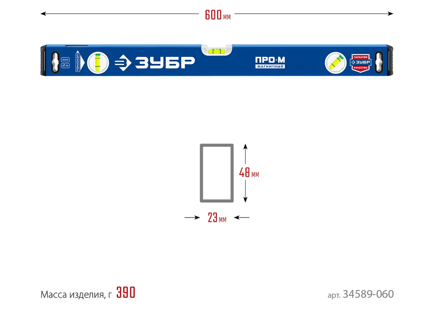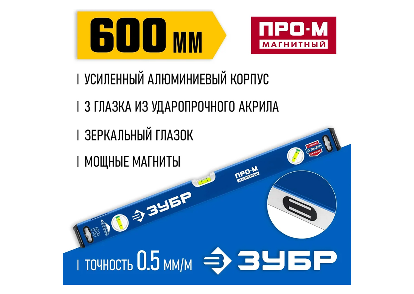 Усиленный магнитный уровень ЗУБР ПРО-М 800 мм Профессионал 34589-080