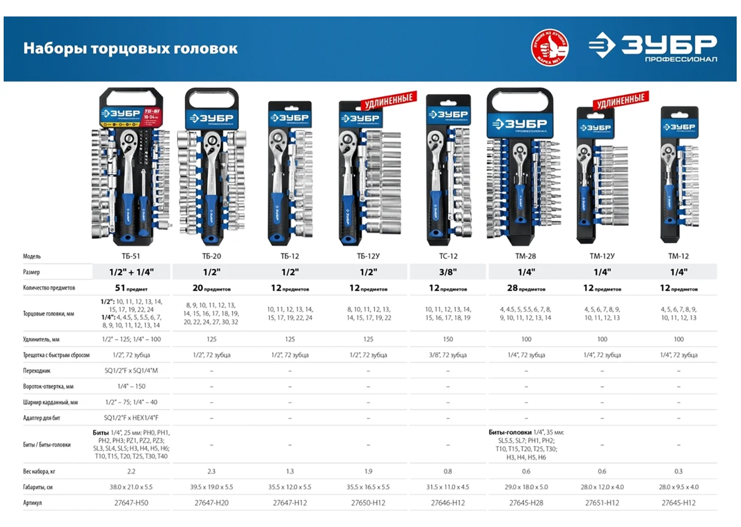 Набор торцовых головок ЗУБР Профессионал ТМ-28, 28 предметов 27645-H28_z01